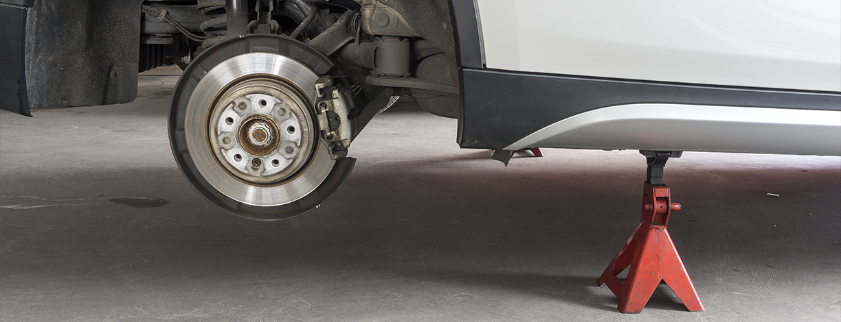 - Løft opp bilen og se til at den står stødig og på en flat plass. Bruk bra støttebukker.